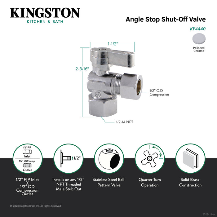 Kingston KF4440 1/2-Inch FIP x 1/2-Inch O.D. Comp Quarter-Turn Angle Shut-Off Valve, Polished Chrome