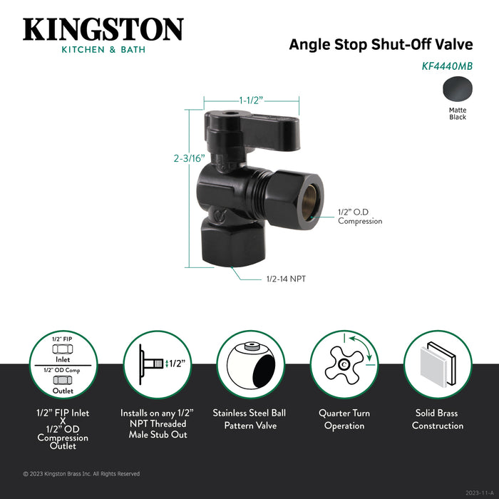 KF4440MB 1/2-Inch FIP x 1/2-Inch O.D. Comp Quarter-Turn Angle Shut-Off Valve, Matte Black