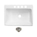 Towne KGCKUS332291 33-Inch Cast Iron Single Bowl Undermount Kitchen Sink (4-Hole) with Strainer, White/Polished Chrome