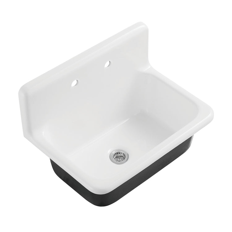 Transform your kitchen with this stylish wall-mounted service sink from the Petra Galley Collection! Originally designed for utility, this sink is now a trendsetter, serving as a stunning focal point for those seeking a charming farmhouse aesthetic. This exquisite single bowl cast iron sink marries timeless elegance with unparalleled functionality. Its glossy enameled finish and sturdy cast iron construction not only enhance your kitchens look but also provide a durable, high-performance workspace. With a spacious 26 x 16-1/4 bowl and a depth of 10-5/16, youll have plenty of room to tackle any kitchen task. Plus, it comes pre-drilled for easy installation of a wall-mounted faucet at 8 center-to-center. Upgrade your kitchen style and functionality today!