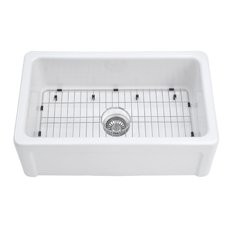 Kingston Heirloom KGPF311910YHC - Kaolin 30-Inch Fireclay Single Bowl Farmhouse Kitchen Sink with Bottom Grid and Strainer, Glossy White