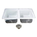 Transform your kitchen with the stunning double bowl cast iron sink that combines timeless elegance with unmatched functionality. Its glossy enameled finish and robust cast iron construction not only enhance your kitchen’s aesthetic but also deliver a durable, high-performance workspace. The generously deep 9” bowls effortlessly accommodate large pots and pans, making cleanup a breeze. With its versatile 2-hole configuration, you can easily install your favorite kitchen faucet and even add a glass filler or soap dispenser for added convenience. The self-rimming design ensures a quick and hassle-free installation, while the included pair of basket strainers adds the perfect finishing touch. Upgrade your kitchen with a sink that’s as practical as it is beautiful!