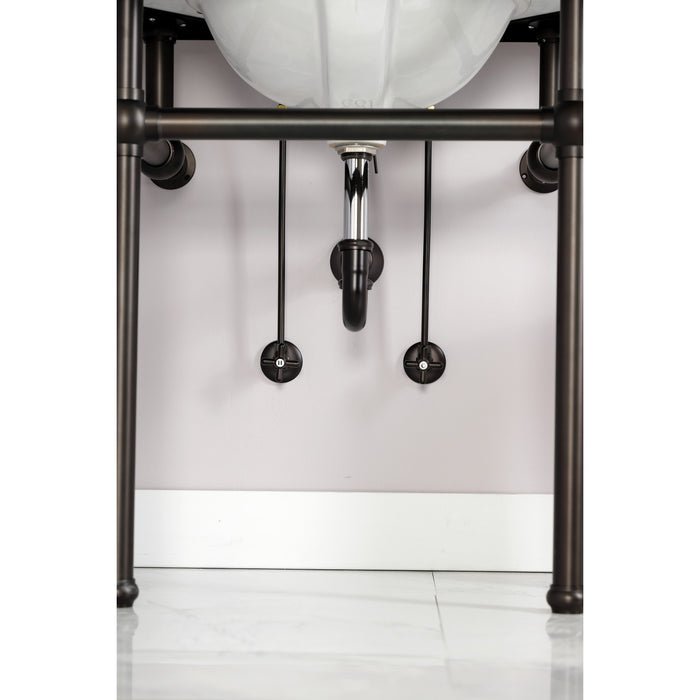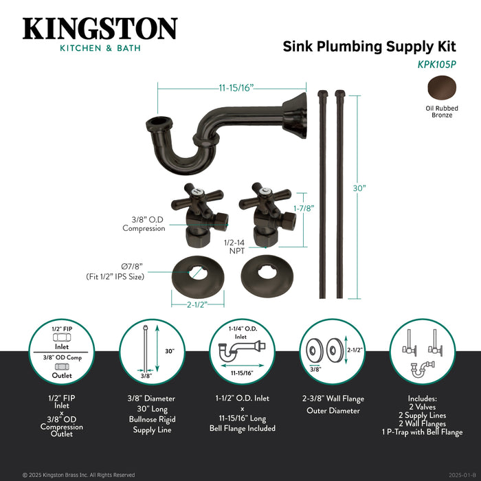This 7-piece plumbing supply kit from Kingston Brass provides all the necessary parts in the water flow process for your bathroom sink. The set includes two 1/4 turn hardisc angle stops with cross handles, two 30" bullnose supply line, two traditional decorative flanges and a traditional 1-1/4" OD Decorative P-trap. Each of these parts are finished with oil rubbed bronze and are constructed in solid brass for durability and reliability.