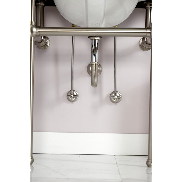 This 7-piece plumbing supply kit from Kingston Brass provides all the necessary parts in the water flow process for your bathroom sink. The set includes two 1/4 turn hardisc angle stops with cross handles, two 30" bullnose supply line, two traditional decorative flanges and a traditional 1-1/4" OD Decorative P-trap. Each of these parts are finished with brushed nickel and are constructed in solid brass for durability and reliability.
