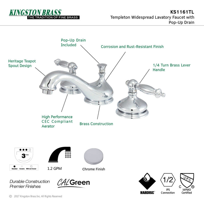 Heritage KS1161TL Two-Handle 3-Hole Deck Mount Widespread Bathroom Faucet with Brass Pop-Up, Polished Chrome