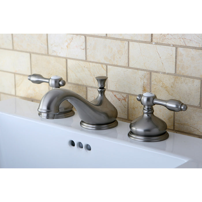 Kingston Heirloom KS1168TAL - Tudor Two-Handle 3-Hole Deck Mount Widespread Bathroom Faucet with Brass Pop-Up, Brushed Nickel