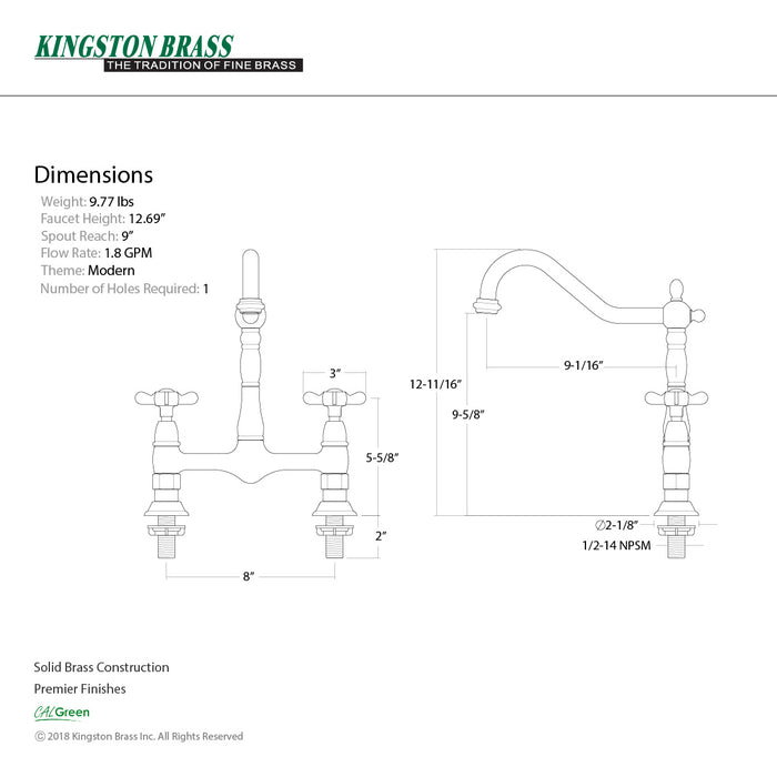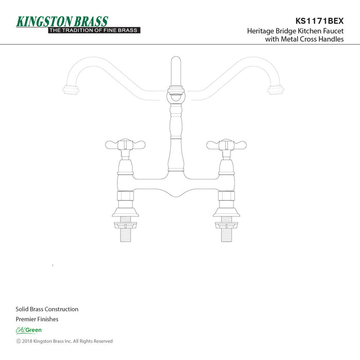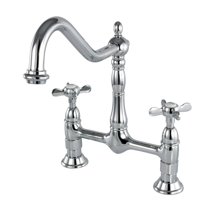 Kingston Heirloom KS1171BEX - Essex Two-Handle 2-Hole Deck Mount Bridge Kitchen Faucet, Polished Chrome