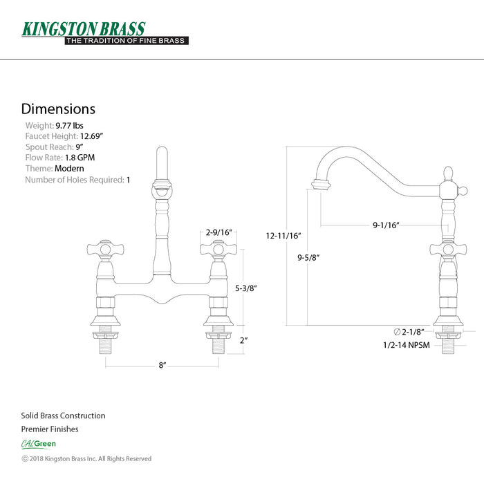Kingston Heirloom KS1175PKX - Duchess Two-Handle 2-Hole Deck Mount Bridge Kitchen Faucet, Oil Rubbed Bronze