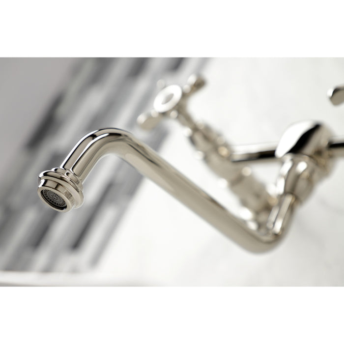Kingston Heirloom KS1216BEX - Essex Double-Handle 2-Hole Wall Mount Bathroom Faucet, Polished Nickel