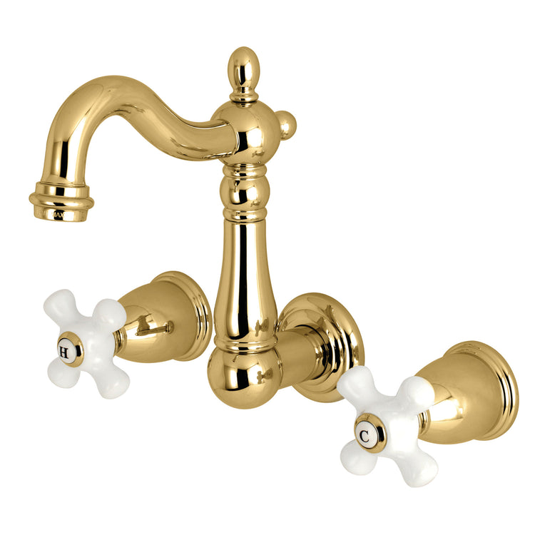 Kingston Heirloom KS1222PX-Heritage Double-Handle 3-Hole Wall Mount Bathroom Faucet, Polished Brass