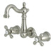 Kingston Heirloom KS1228AX-Heritage Double-Handle 3-Hole Wall Mount Bathroom Faucet, Brushed Nickel