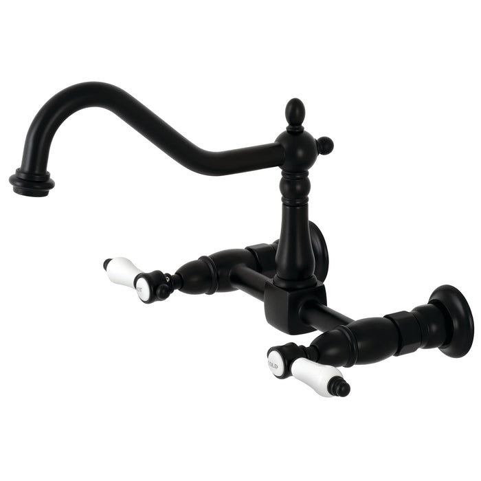 Bel-Air KS1240BPL Two-Handle Wall Mount Bridge Kitchen Faucet, Matte Black