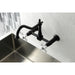 Kingston Heirloom KS1240PX - Heritage Two-Handle 2-Hole Wall Mount Bridge Kitchen Faucet, Matte Black