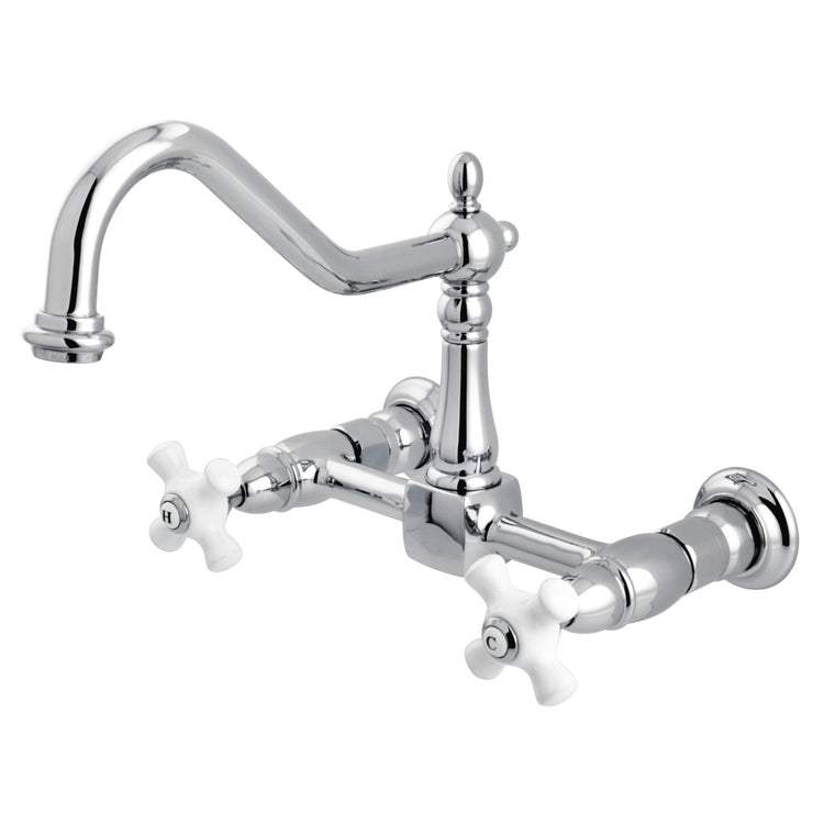 Kingston Heirloom KS1241PX - Heritage Two-Handle 2-Hole Wall Mount Bridge Kitchen Faucet, Polished Chrome