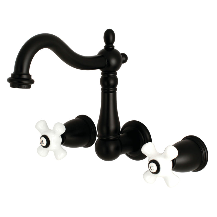 Kingston Heirloom KS1250PX - Heritage Double-Handle 3-Hole Wall Mount Bathroom Faucet, Matte Black