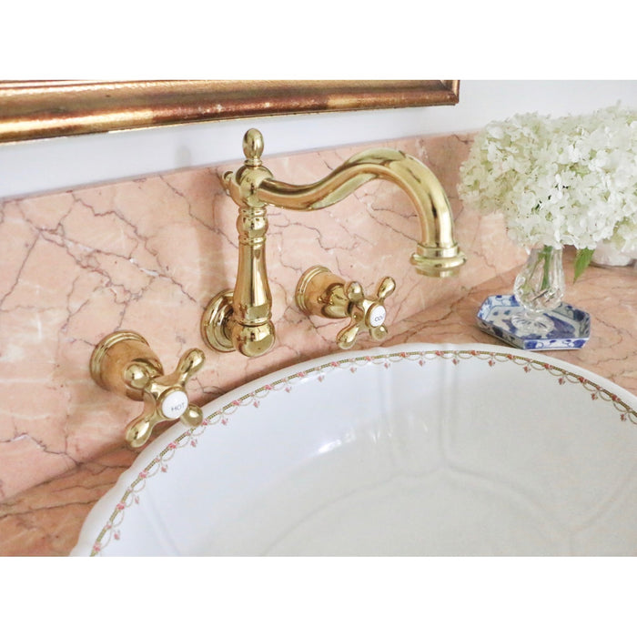 Heritage KS1252AX Double-Handle 3-Hole Wall Mount Bathroom Faucet, Polished Brass