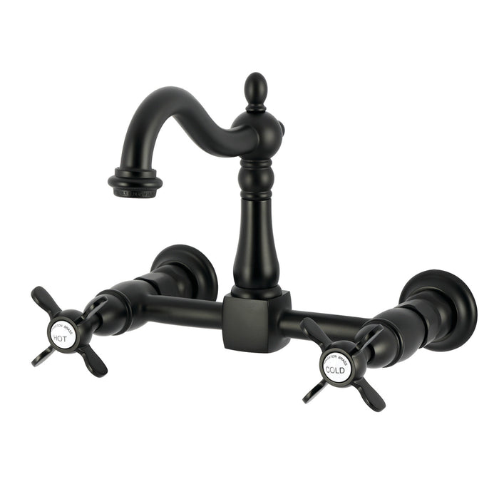 Essex KS1260BEX Two-Handle 2-Hole Wall Mount Bridge Kitchen Faucet, Matte Black