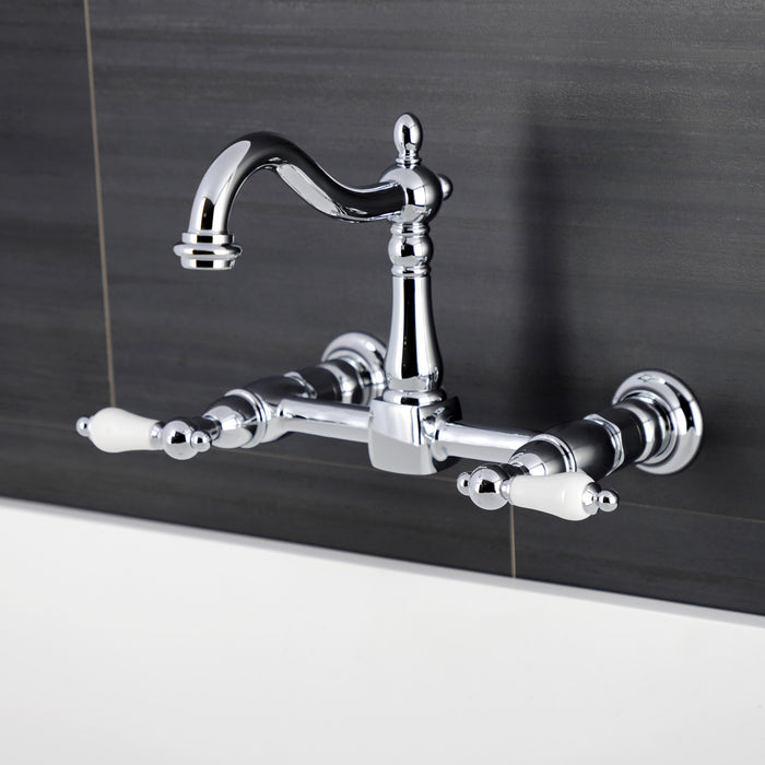 Kingston Heirloom KS1261PL - Heritage Two-Handle 2-Hole Wall Mount Bridge Kitchen Faucet, Polished Chrome