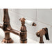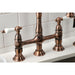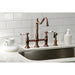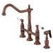 Kingston Heirloom KS127PLBSAC - Heritage Two-Handle 4-Hole Deck Mount Bridge Kitchen Faucet with Brass Sprayer, Antique Copper