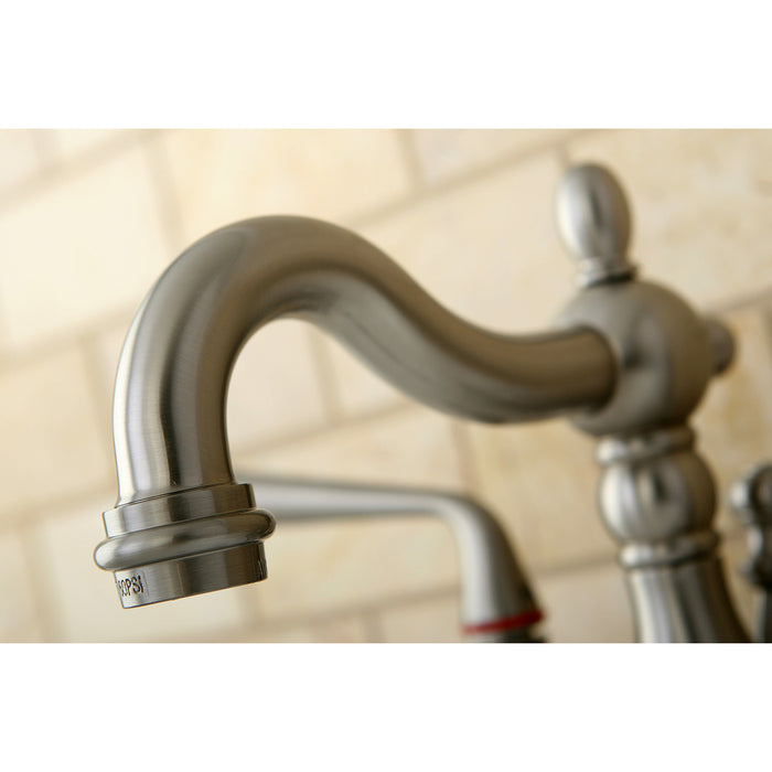 Kingston Tulare KS1608ZL - Silver Sage Double-Handle 3-Hole Deck Mount 4-Inch Centerset Bathroom Faucet with Brass Pop-Up, Brushed Nickel