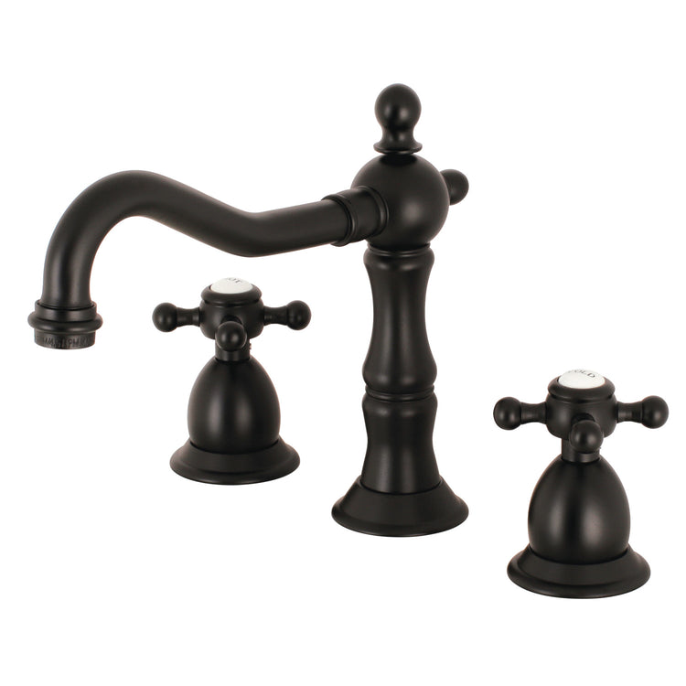 Kingston Heirloom KS1975BX-Heritage Two-Handle 3-Hole Deck Mount Widespread Bathroom Faucet with Brass Pop-Up, Oil Rubbed Bronze