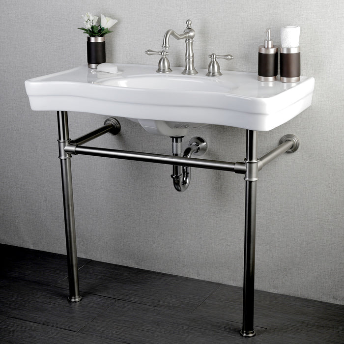 Kingston Heirloom KS1978AL - Heritage Two-Handle 3-Hole Deck Mount Widespread Bathroom Faucet with Brass Pop-Up, Brushed Nickel