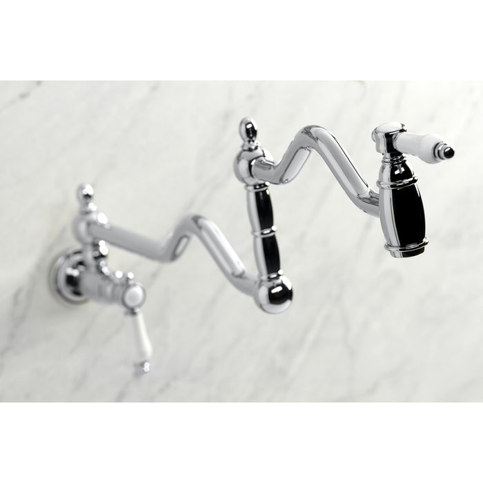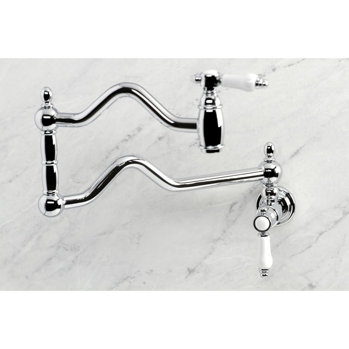Kingston Heirloom KS2101BPL - Bel-Air Two-Handle 1-Hole Wall Mount Pot Filler Faucet, Polished Chrome