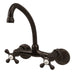 Kingston Heirloom KS214ORB - Kingston Two-Handle 2-Hole Wall Mount Bridge Kitchen Faucet, Oil Rubbed Bronze