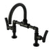 Kingston Sona KS2170TKL - Hallerbos Two-Handle 4-Hole Deck Mount Bridge Bathroom Faucet with Push Pop-Up Drain, Matte Black