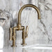 Kingston Sona KS2173TKL - Hallerbos Two-Handle 4-Hole Deck Mount Bridge Bathroom Faucet with Push Pop-Up Drain, Antique Brass