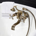 Wall mount clawfoot tub faucets are the perfect fixture to add decorative flair within your bathroom because of their unique architectural elements. With vintage opulence, this will complete your refined bathroom decorum with the help of its premium antique brass finish and traditionally styled handheld shower. The solid brass construction also makes for a heavy, quality made product. Hand shower with porcelain handle and 59-inch hose.