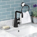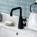 The Cannon faucet in Kingston Brass's Cosntantine collection is designed to make a bold statement. The unique vertical stacked handle design allows for independent control of temperature and flow in a compact, single hole form factor. The top handle controls flow volume while the bottom handle controls temperature through a ceramic disc cartridge. The clean lines and geometric D-spout create a powerful contemporary silhouette without sacrificing utility. Solid brass construction and high grade matte black finish assure the longevity of your fixture. Includes finish match pop-up drain to perfectly coordinate your bathroom.