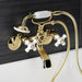 Kingston KS226PXPB Three-Handle 2-Hole Wall Mount Clawfoot Tub Faucet with Hand Shower, Polished Brass