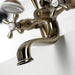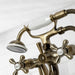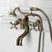 Vintage opulence finds itself within this deck-mount clawfoot tub faucet. As the perfect complement to your tub, this will complete your refined bathroom decorum with the help of its premium, glistening antique brass finish and telephone style hand shower. The solid brass construction also makes for a heavy, quality made product. Hand shower with porcelain handle and 59-inch hose.