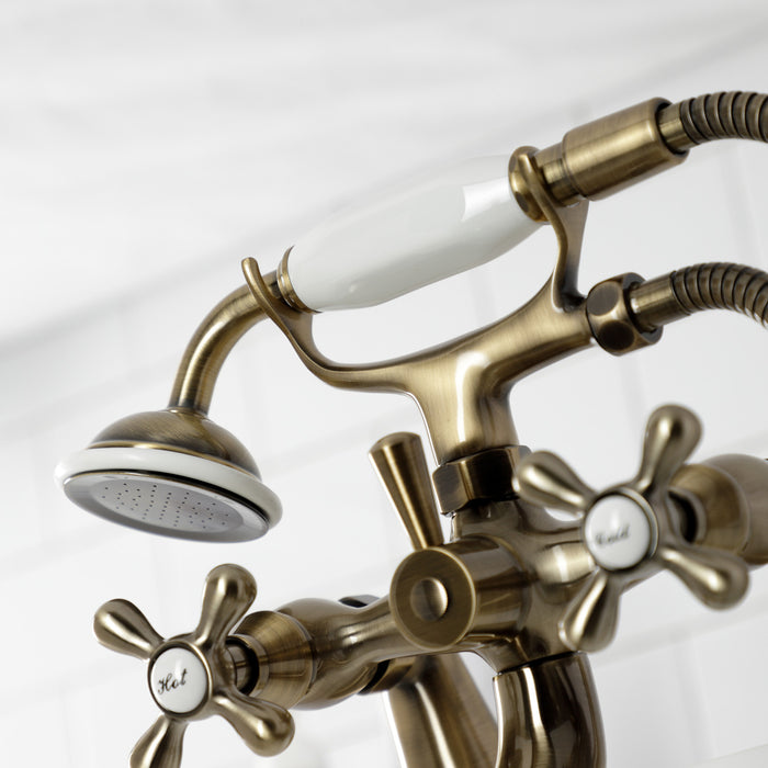Kingston Heirloom KS227AB - Kingston Three-Handle 2-Hole Deck-Mount Clawfoot Tub Faucet with Hand Shower, Antique Brass