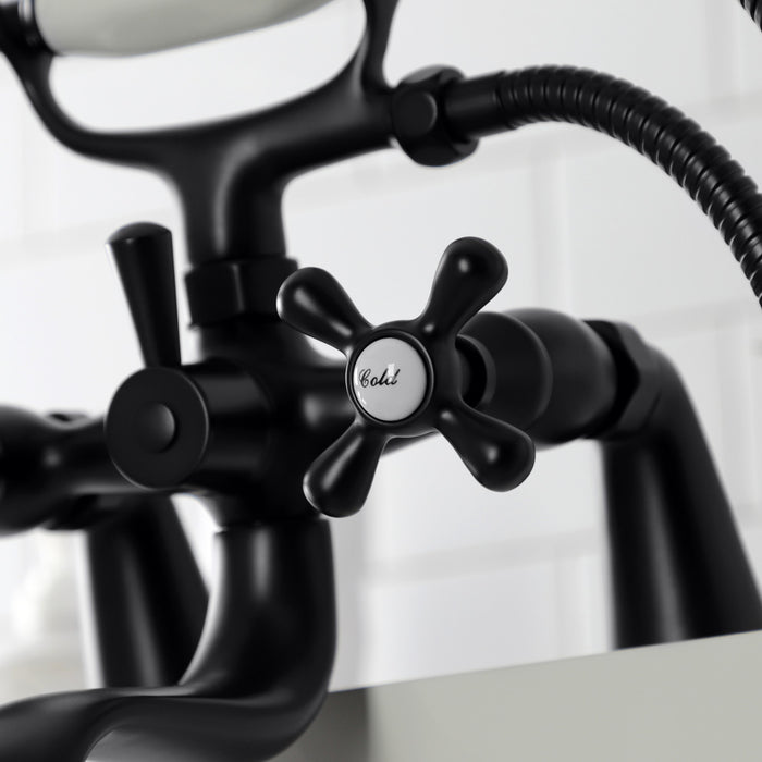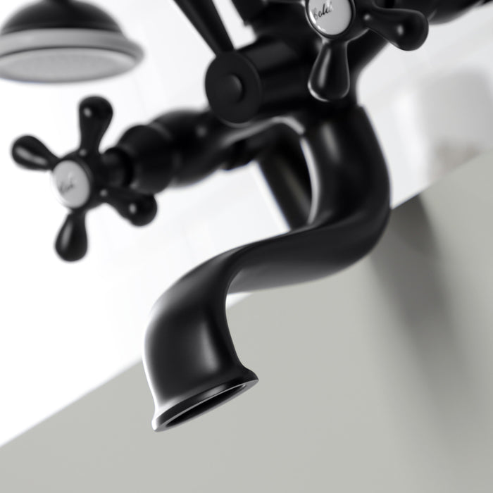 Kingston Heirloom KS227MB - Kingston Three-Handle 2-Hole Deck-Mount Clawfoot Tub Faucet with Hand Shower, Matte Black