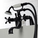 Vintage opulence finds itself within this deck-mount clawfoot tub faucet. As the perfect complement to your tub, this will complete your refined bathroom decorum with the help of its premium, glistening matte black finish and telephone style hand shower. The solid brass construction also makes for a heavy, quality made product. Hand shower with porcelain handle and 59-inch hose.