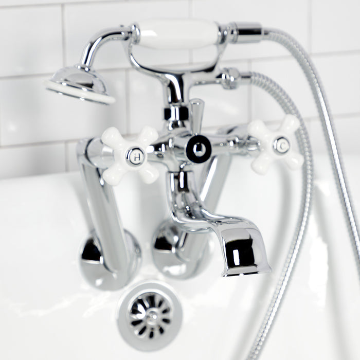 Kingston Heirloom KS229PXC - Kingston Three-Handle 2-Hole Tub Wall Mount Clawfoot Tub Faucet with Hand Shower, Polished Chrome