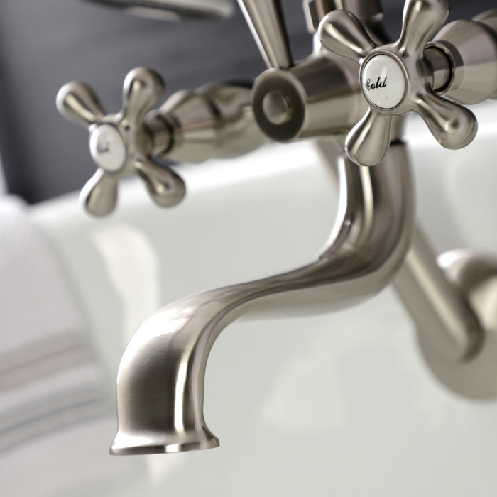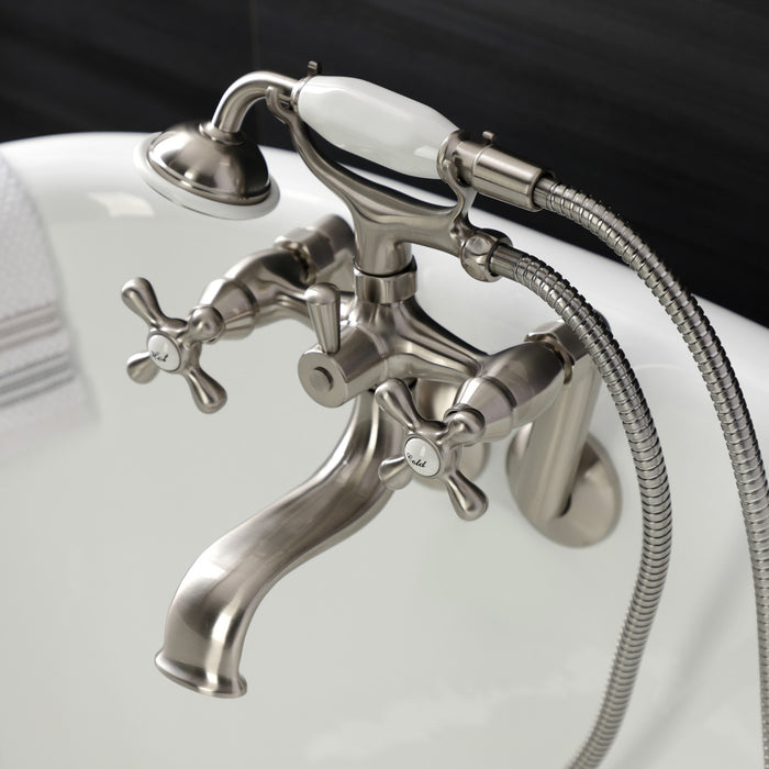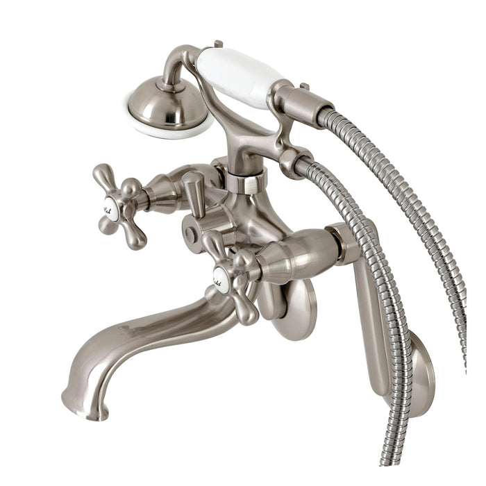 Kingston Heirloom KS229SN - Kingston Three-Handle 2-Hole Tub Wall Mount Clawfoot Tub Faucet with Handshower, Brushed Nickel