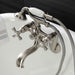 Wall mount clawfoot tub faucets are the perfect fixture to add decorative flair within your bathroom because of their unique architectural elements. With vintage opulence, this will complete your refined bathroom decorum with the help of its premium brushed nickel finish and traditionally styled handheld shower. The solid brass construction also makes for a heavy, quality made product. Hand shower with porcelain handle and 59-inch hose.