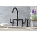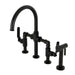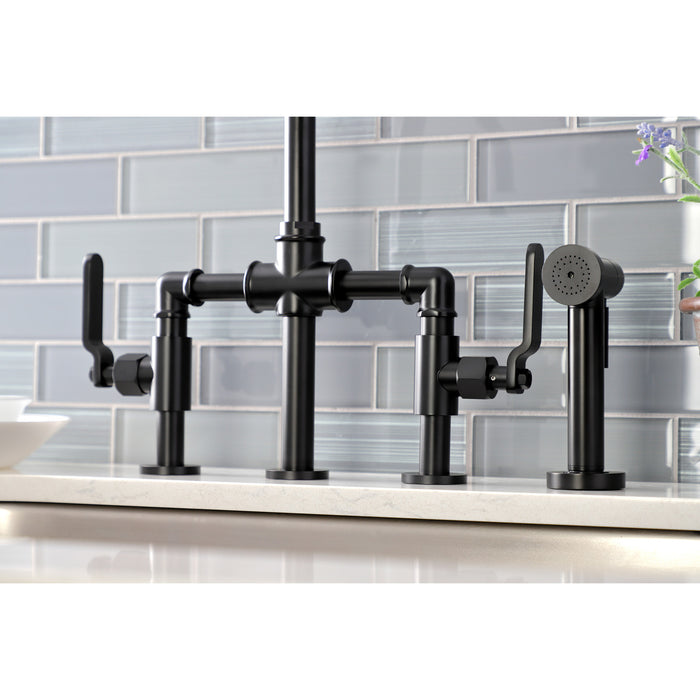Kingston Sona KS2330KL - Whitaker Two-Handle 4-Hole Deck Mount Industrial Style Bridge Kitchen Faucet with Brass Sprayer, Matte Black