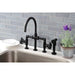 Kingston Sona KS2330RX - Belknap Two-Handle 4-Hole Deck Mount Industrial Style Bridge Kitchen Faucet with Brass Sprayer, Matte Black