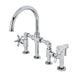 Kingston Sona KS2331NX - Hamilton Two-Handle 4-Hole Deck Mount Industrial Style Bridge Kitchen Faucet with Brass Sprayer, Polished Chrome