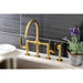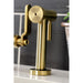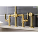 Kingston Sona KS2337KL - Whitaker Two-Handle 4-Hole Deck Mount Industrial Style Bridge Kitchen Faucet with Brass Sprayer, Brushed Brass