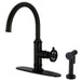 Kingston Sona KS2430RKX - Webb Single-Handle 1-Hole Deck Mount Kitchen Faucet with Knurled Handle and Brass Side Sprayer, Matte Black
