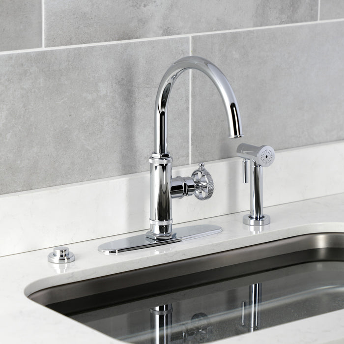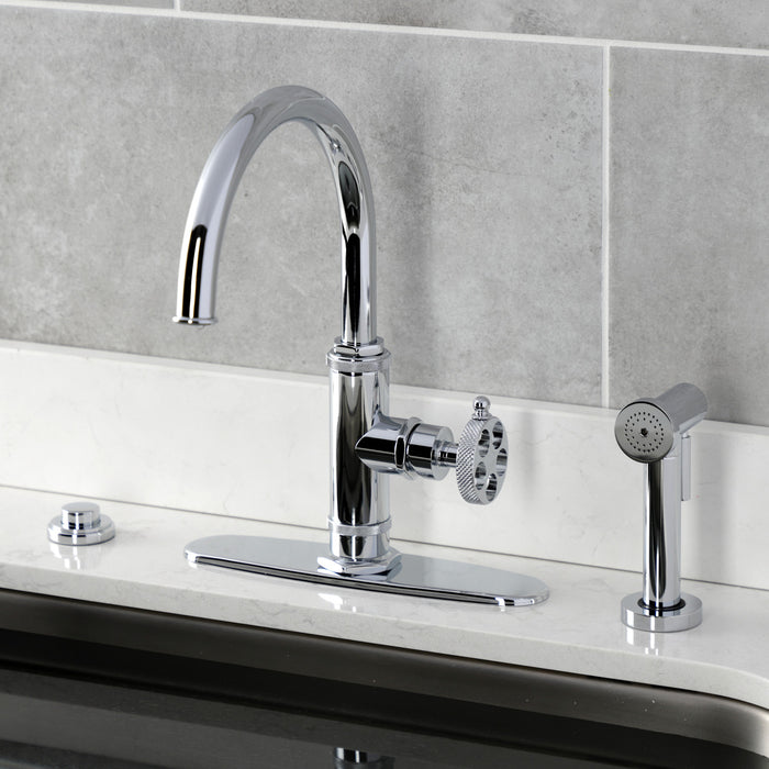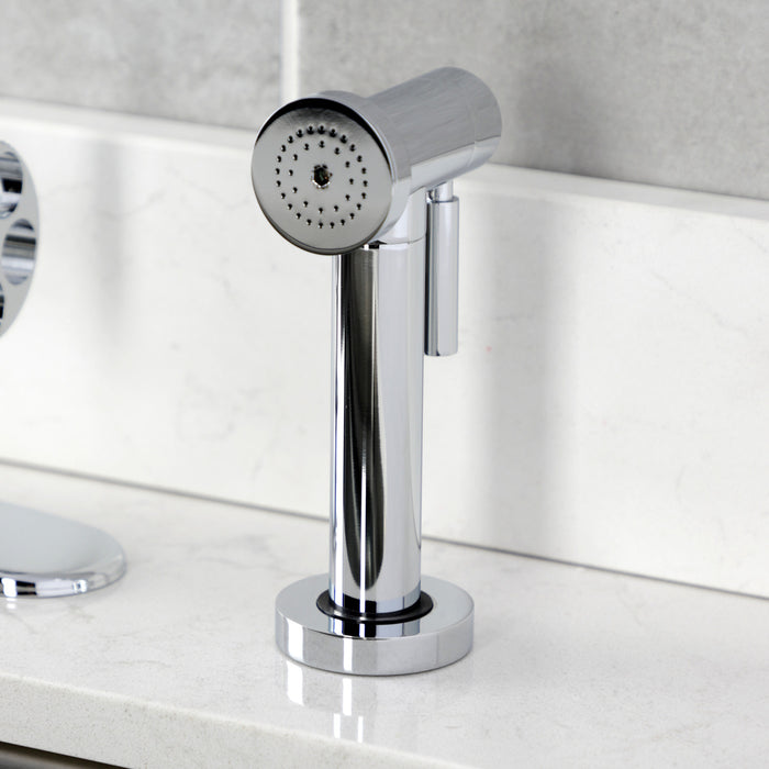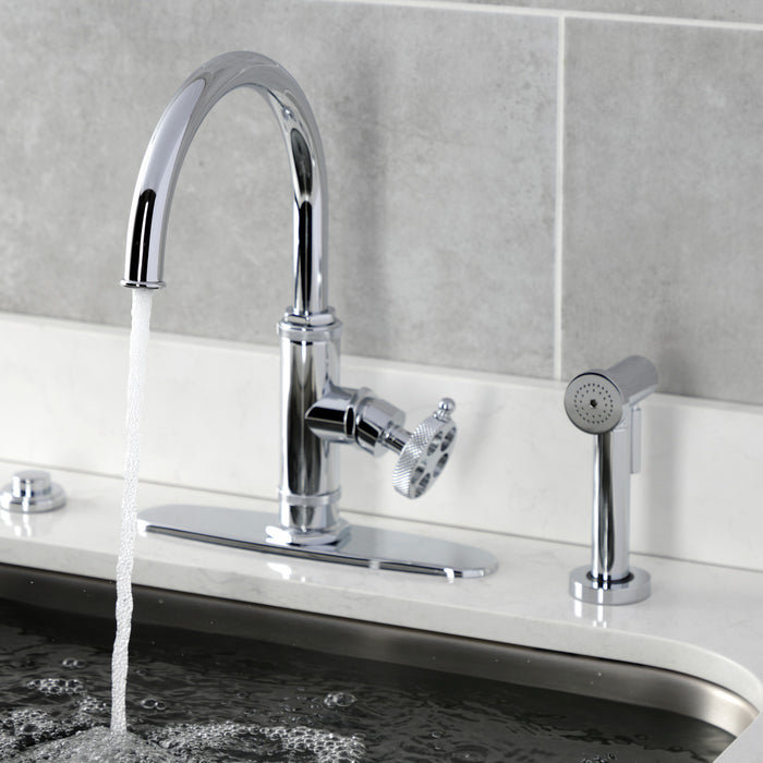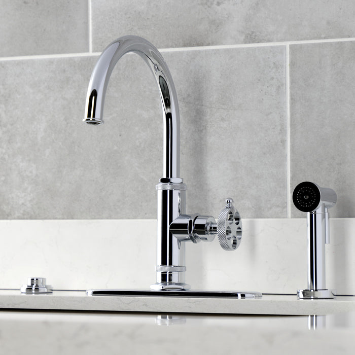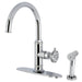 Kingston Sona KS2431RKX - Webb Single-Handle 1-Hole Deck Mount Kitchen Faucet with Knurled Handle and Brass Side Sprayer, Polished Chrome
