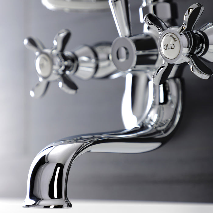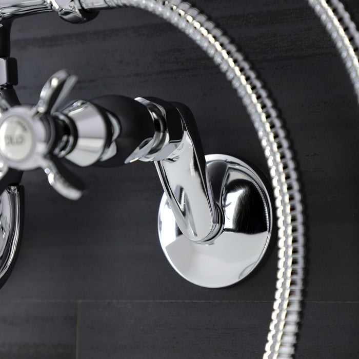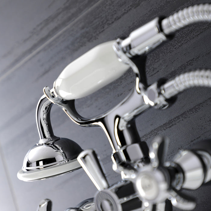 Kingston Heirloom KS246C - Essex Three-Handle 2-Hole Wall Mount Clawfoot Tub Faucet with Handshower, Polished Chrome