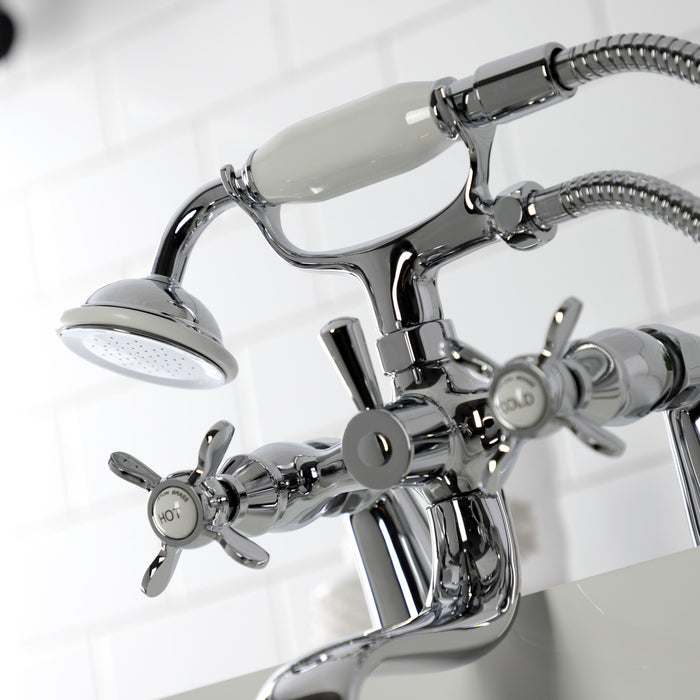 Kingston Heirloom KS247C - Essex Three-Handle 2-Hole Deck-Mount Clawfoot Tub Faucet with Hand Shower, Polished Chrome