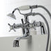 Vintage opulence finds itself within this deck-mount clawfoot tub faucet. As the perfect complement to your tub, this will complete your refined bathroom decorum with the help of its premium, glistening polished chrome finish and telephone style hand shower. The solid brass construction also makes for a heavy, quality made product. Hand shower with porcelain handle and 59-inch hose.