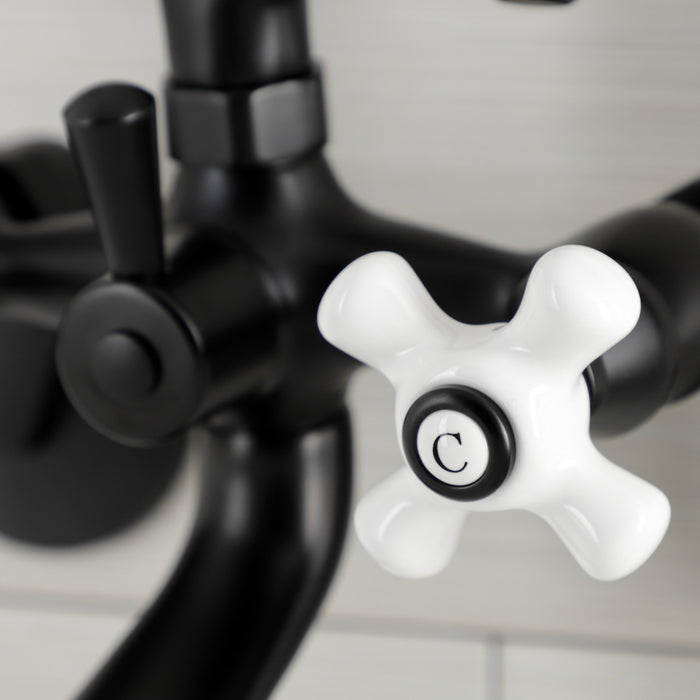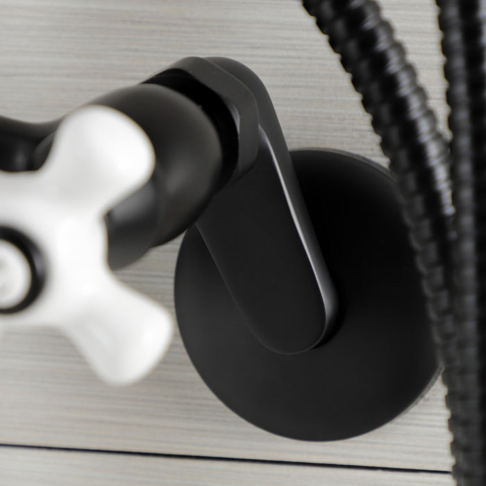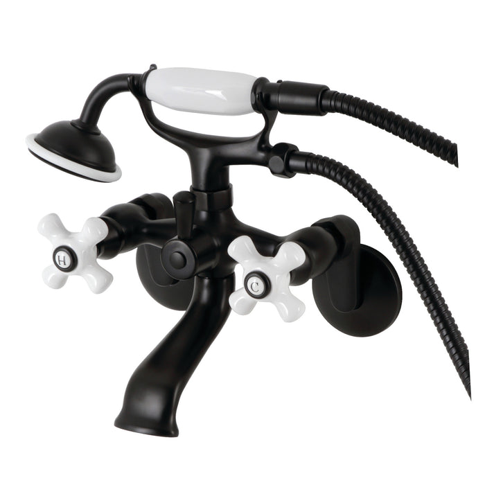 Kingston KS266PXMB Three-Handle 2-Hole Wall Mount Clawfoot Tub Faucet with Hand Shower, Matte Black